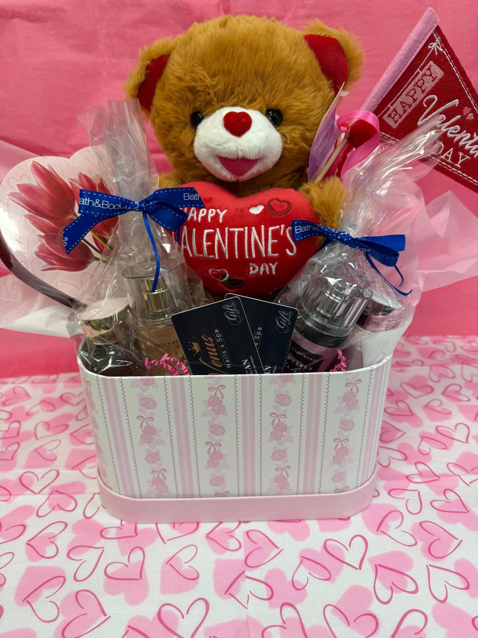 Bath and Body Works Body Wash, Lotion, and Shower Gel Kits (In the Stars and A Thousand Wishes), Teddy Bear Plush Animal, Box of Chocolates, 2 Venus Nail $10 Gift Cards. Donated by ADACCV Maintenance Team